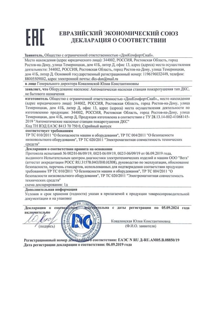 «Донкомфортснаб» производит и поставляет насосное оборудование в пределах России. «ДКС» - это надежная компания с репутацией ответственного партнера, исполняющего договоренности точно в срок. Изготовление и сборка пожарных насосных станций осуществляется на основе комплектующих известных европейских брендов. Wilo, Danfoss, CNP, Grundfos, Espa и другие марки доказали свою долговечность и работоспособность в режимах ожидания и высокой нагрузки. Вы можете купить насосную станцию пожаротушения, которая полностью готова к установке. Поставляемое оборудование укомплектовано всем необходимым для быстрого подключения сразу после доставки заказчику.
